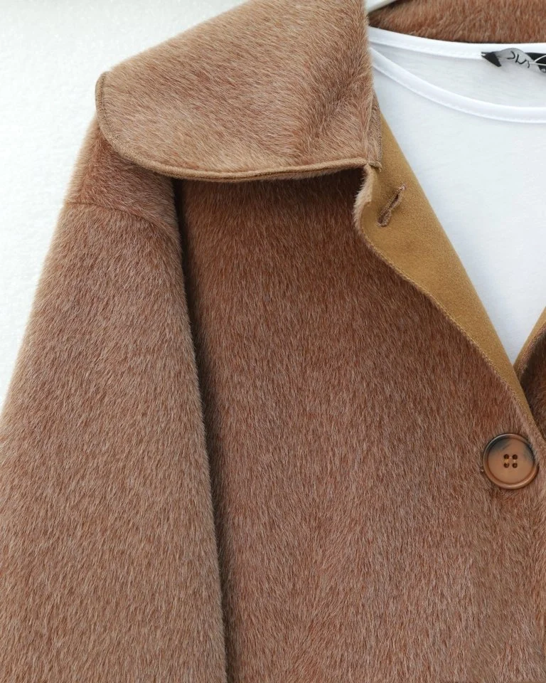 9085 Balık Sırtı Kaşe Kaban - B.Sarı