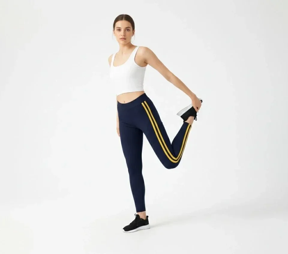 Likralı Yan Sarı Şeritli Detaylı Tayt - Siyah