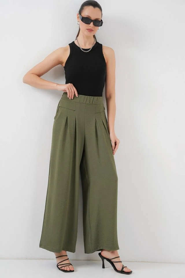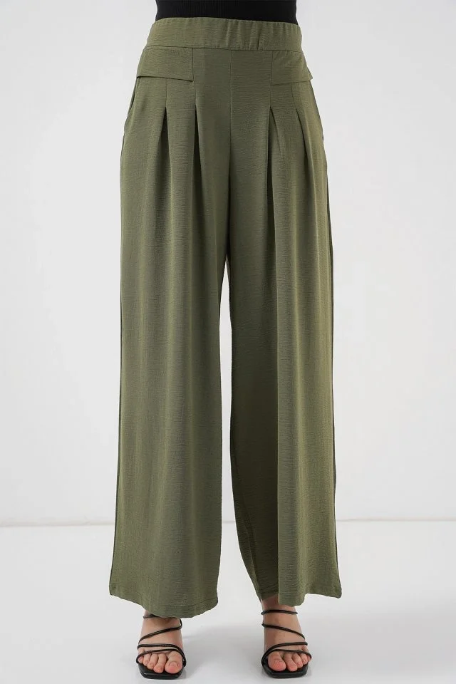 Geniş Paça Pileli Pantolon 6718 - Haki