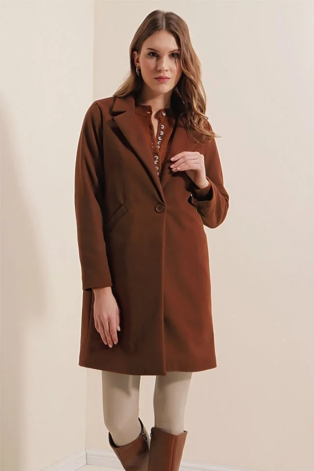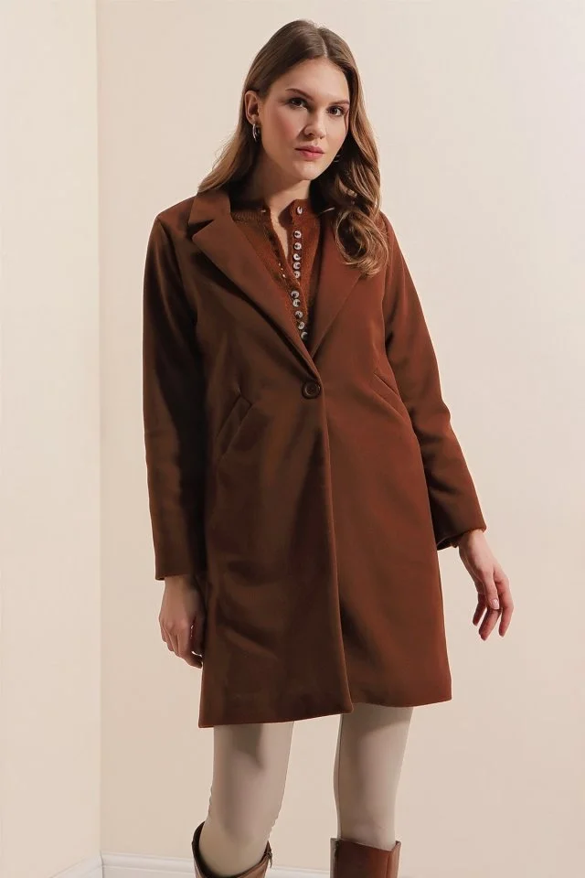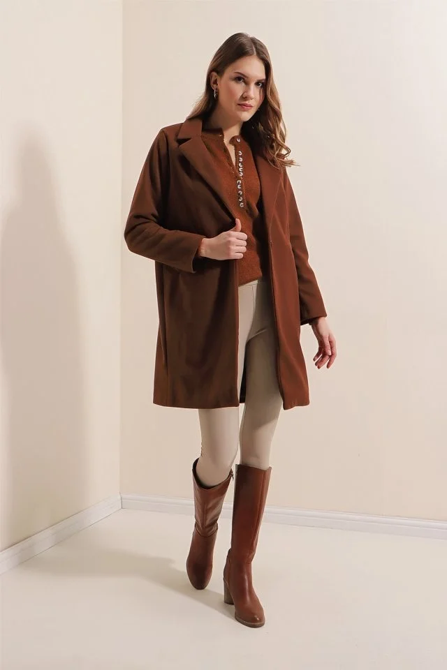 9085 Balık Sırtı Kaşe Kaban - B.Sarı