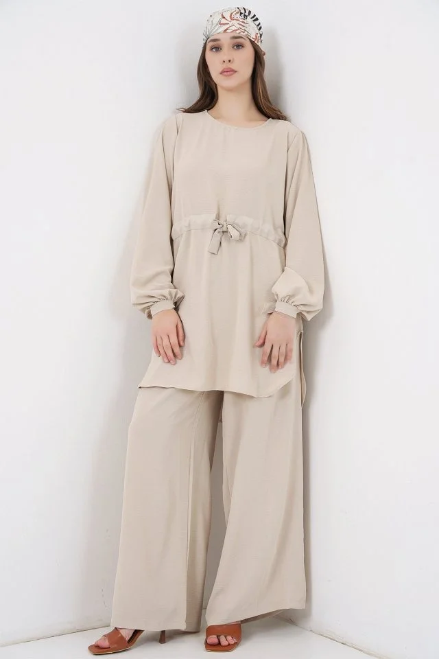 Uzun Tunik Pantolon İkili Takım 6719 - Krem