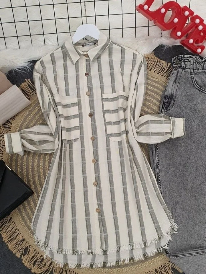 Uzun Kollu Çizgili Gömlek 20283 - Bej
