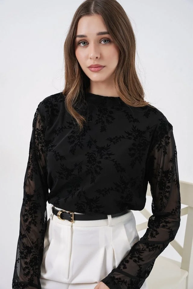 Kadın Uzun Kollu önden Fermuarlı Ithal Krep Elbise