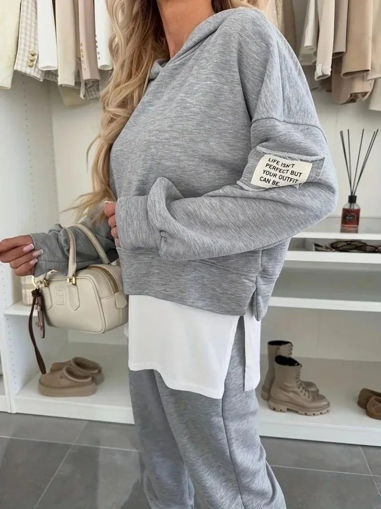 Kadın Uzun Kollu Kapşonlu Viskon Iki Iplik Bluz Ve Pantolon Ikili Takım