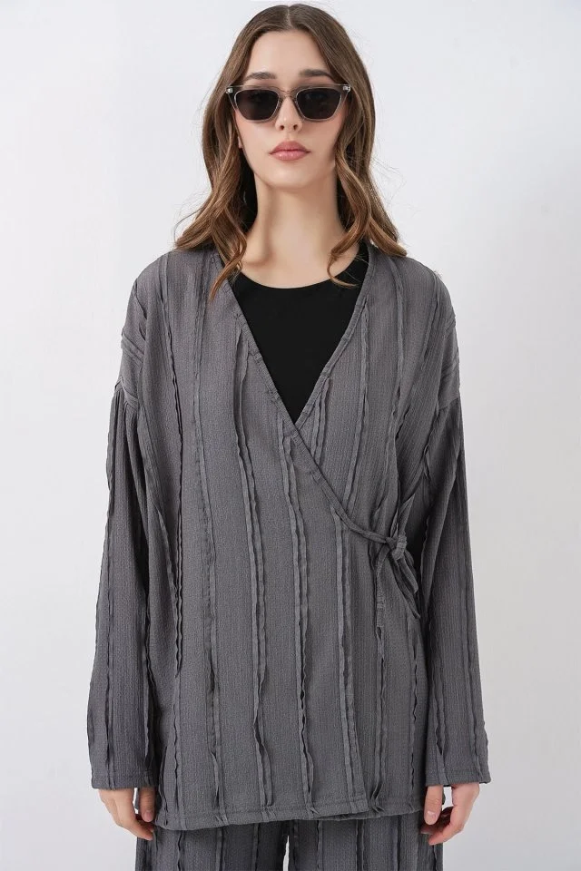 Örme Kimono Pantolon İkili Takım 30067 - Gri