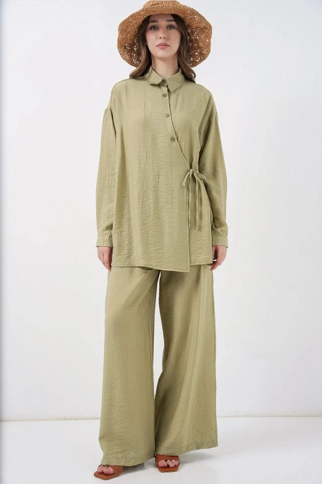 Bağcıklı Tunik Pantolon İkili Takım 6752 - E.Yeşil