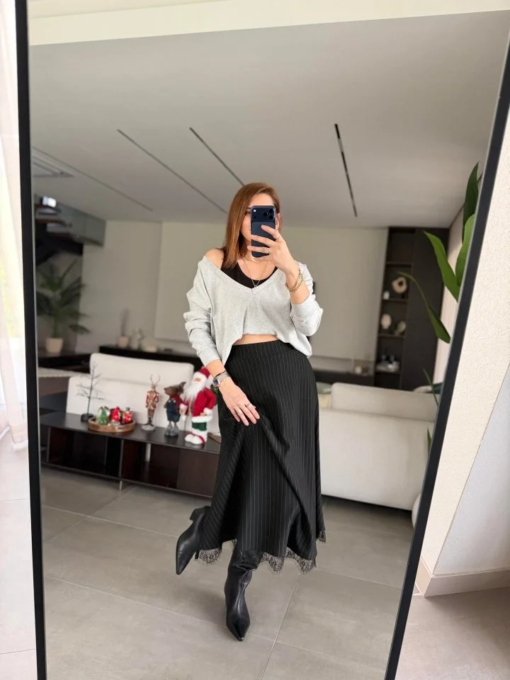 Kadın Uzun Kollu Kolu Tül Yanları şerit Detay Modal Ikili Takım