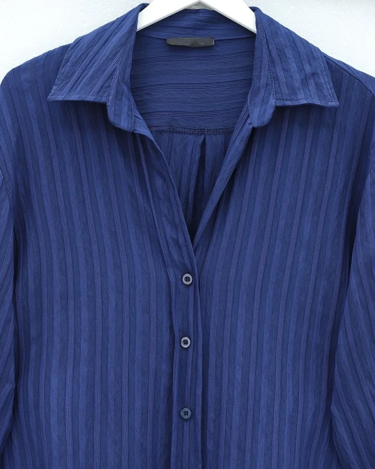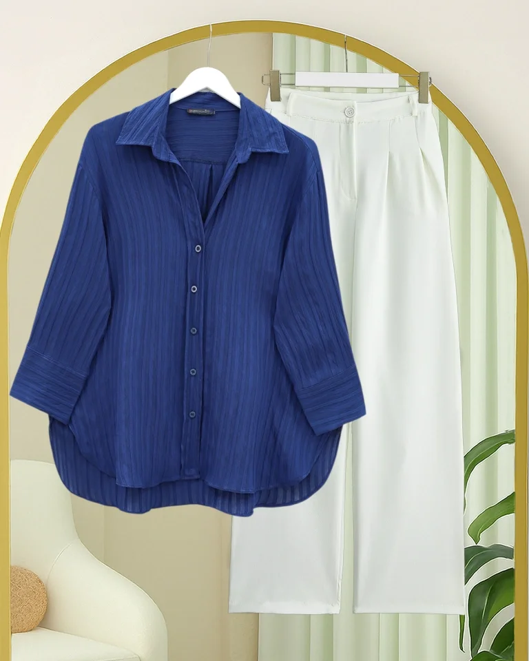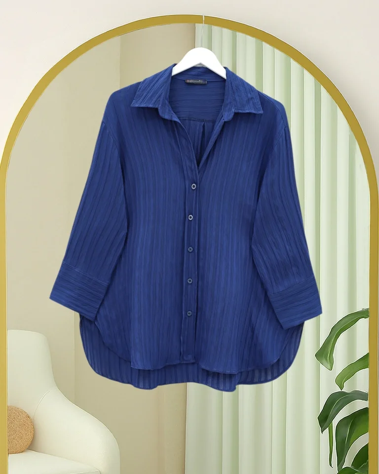 Çizgi Desen Oval Kesim Krinkıl Gömlek -Laci