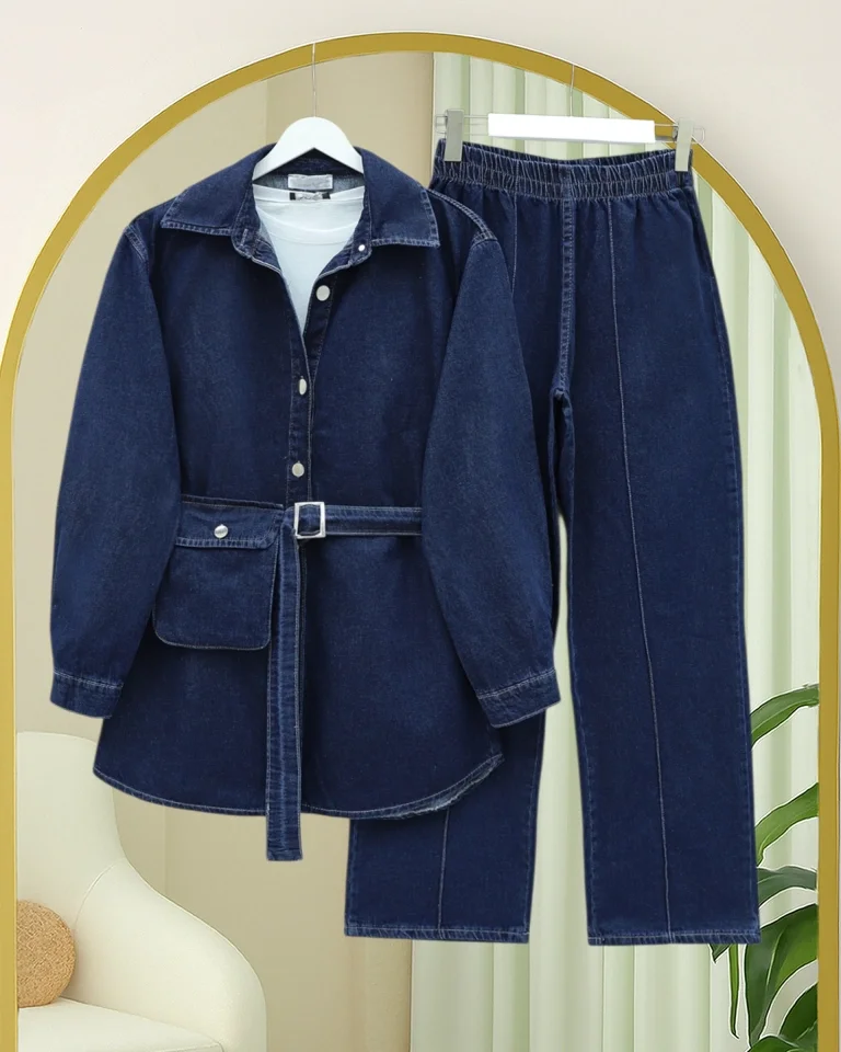 Çanta Cepli Çimalı Pantolonlu Kot Takım -Laci