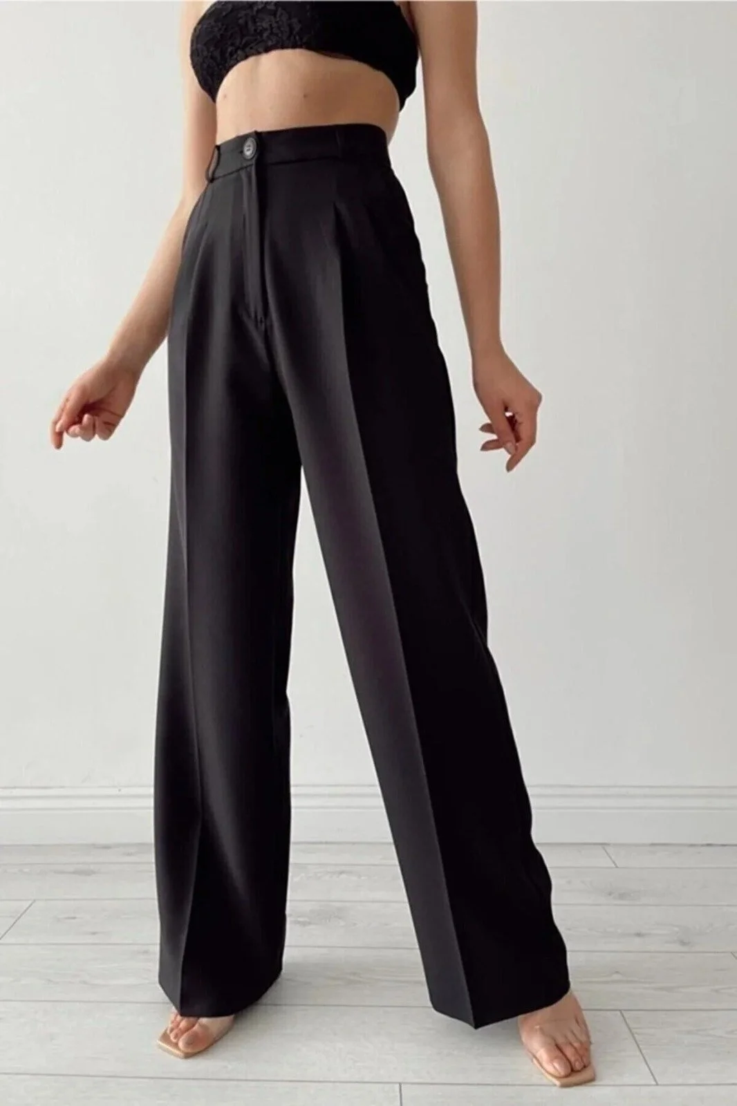 Kadın Yüksek Bel Cepli Ithal Krep Pantolon