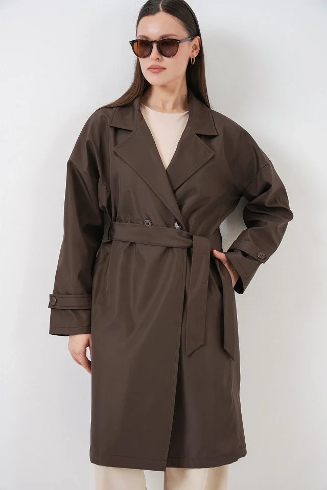 Kruvaze Yaka Trençkot 5987 - Kahverengi