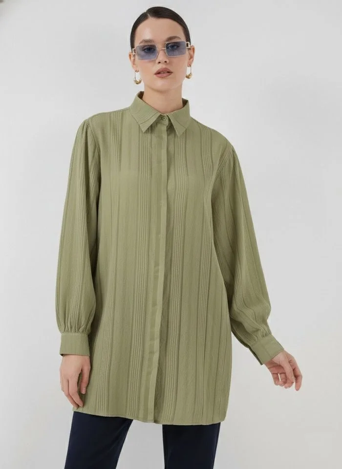 Çizgili Uzun Gömlek Tunik 5947 - Çağla