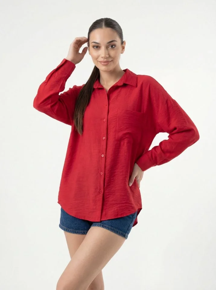 20153 Tek Cepli Oversize Keten Gömlek - Nar
