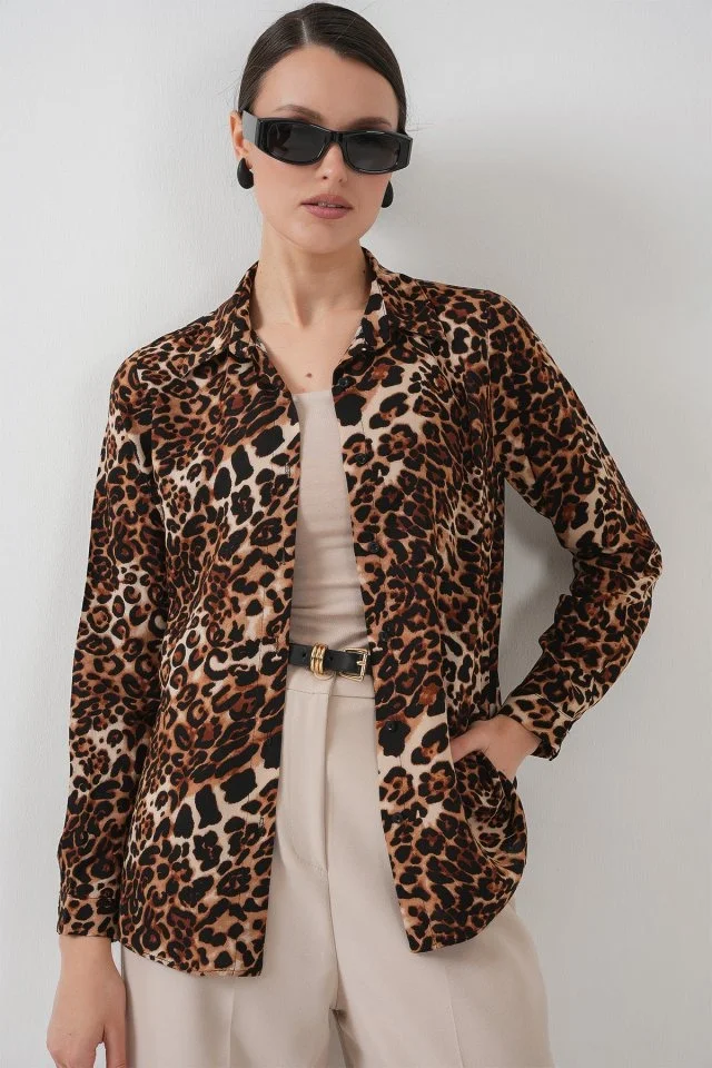 3721 Grafik Desenli Gömlek - C. Kahverengi