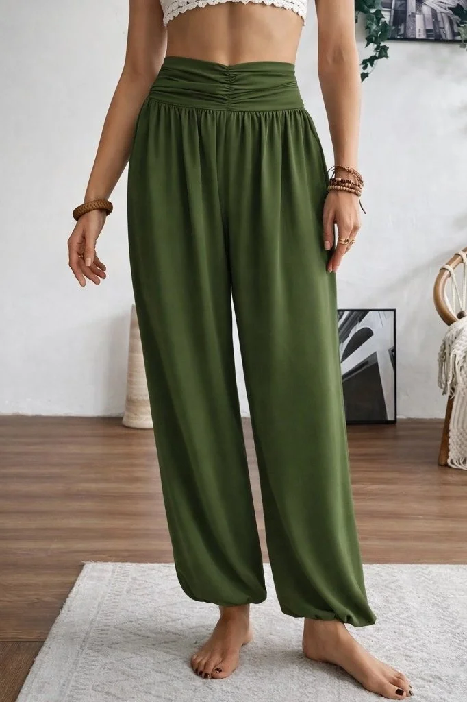 Kadın Yüksel Bel Yoğun Büzgü Detaylı Aerobin Pantolon