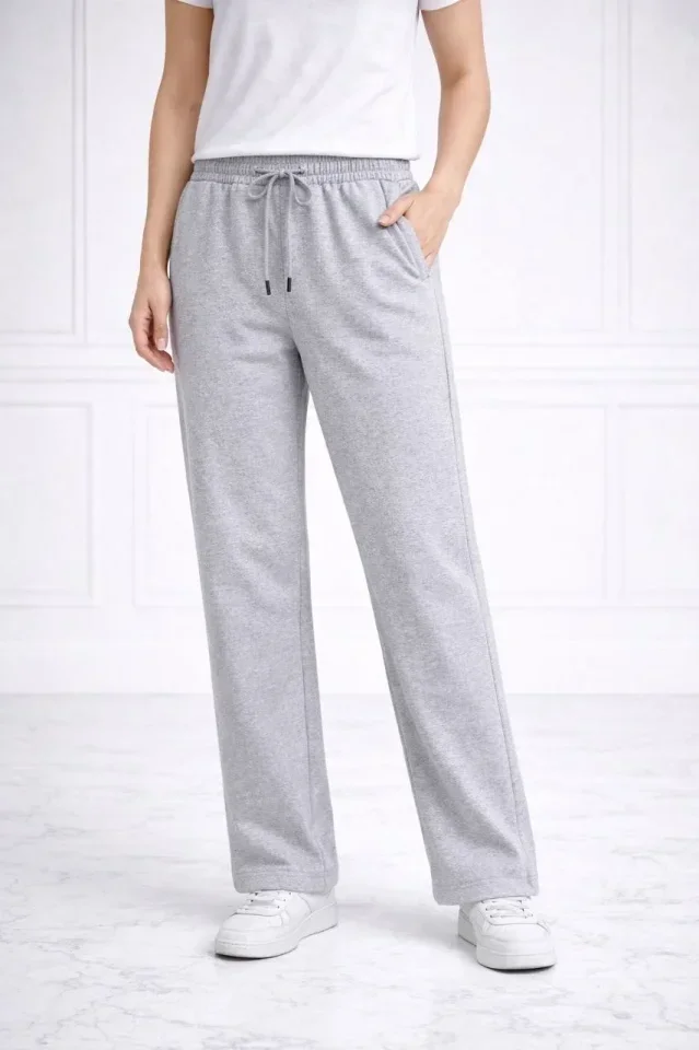 Düz Paça Beli Lastikli İpli Günlük Spor Eşofman Altı Rahat Fit - Gri