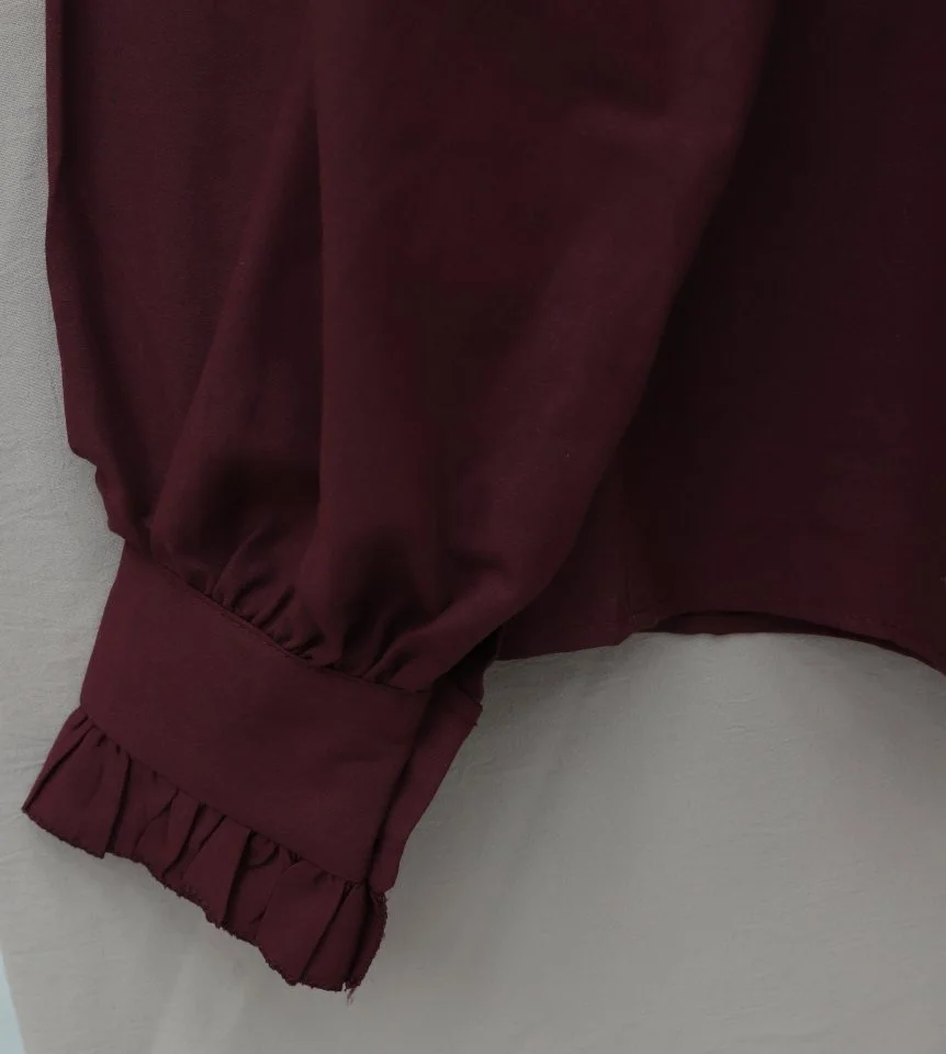 Balon Kol Düğmeli Kısa Poplin Gömlek -Bordo
