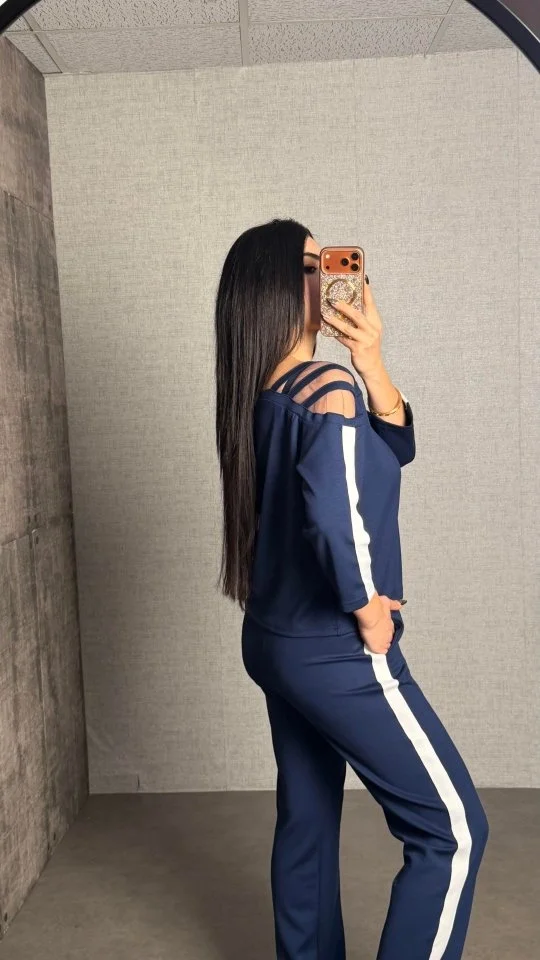 Kadın Uzun Kollu Kolu Tül Yanları şerit Detay Modal Ikili Takım
