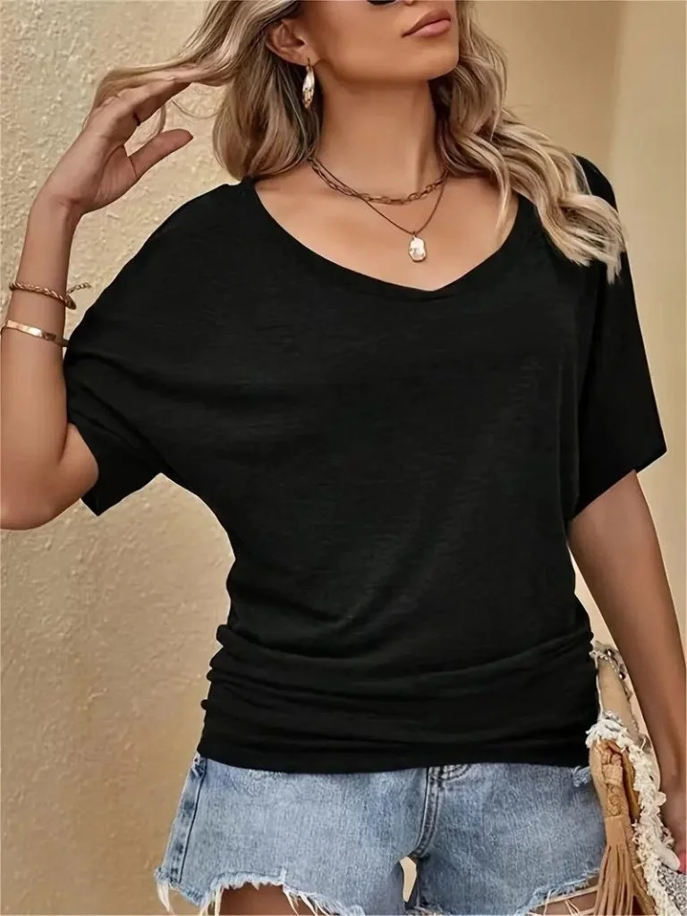 Kadın Tek Omuzu Açık Kısa Kollu Salaş Viskon Bluz