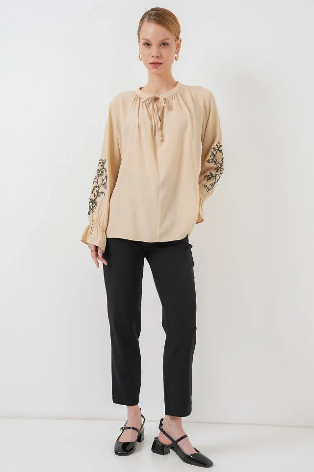 Nakışlı Örme Bluz 941 - Bej