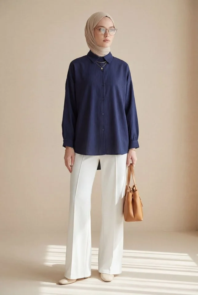 Kadın İsa Kollu Kayık Yaka Bluz Ve Pantolon Misal Kumaş Ikili Takım