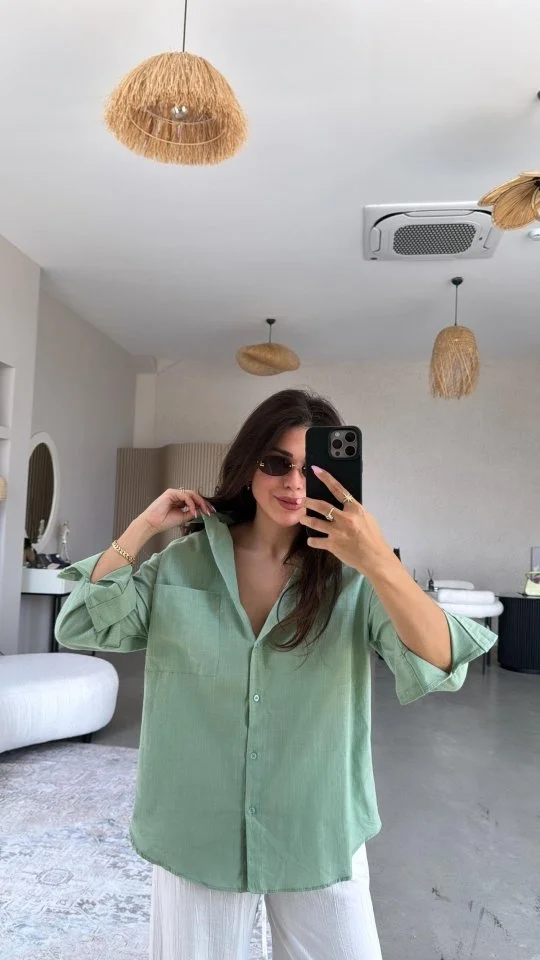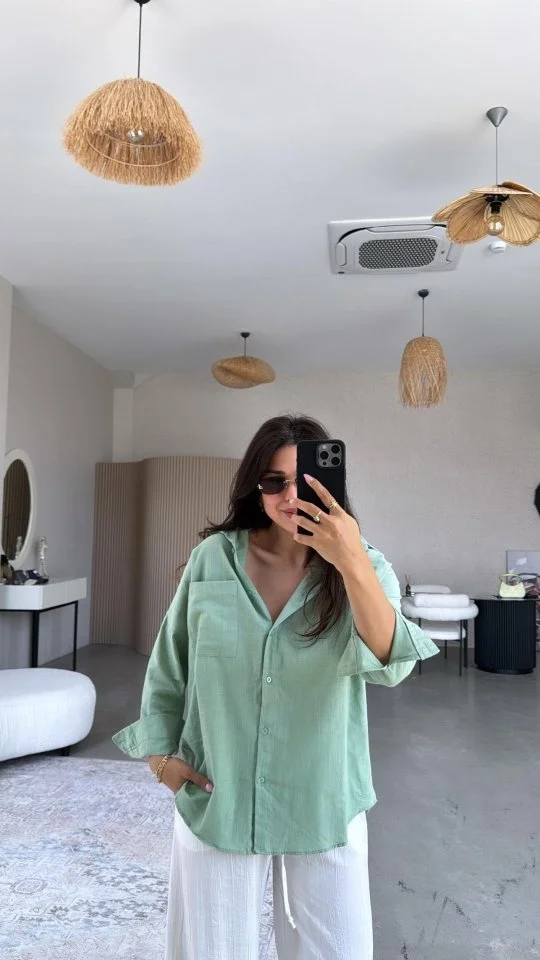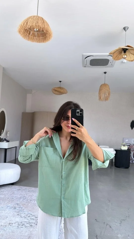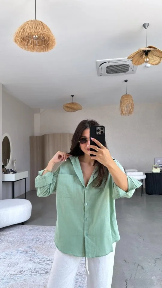 Kadın Tek Cepli Over Size Ketem Gömlek