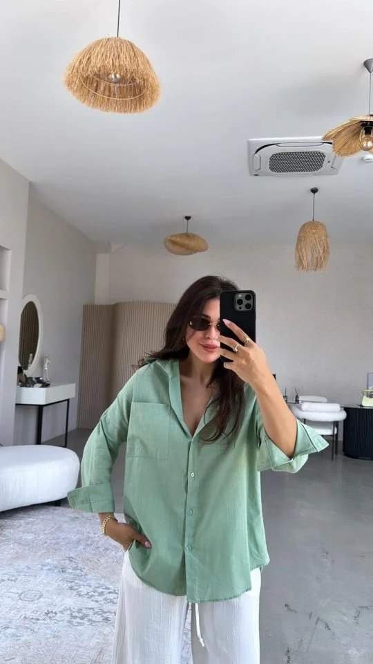 Tek cepli müslin gömlek haki pt