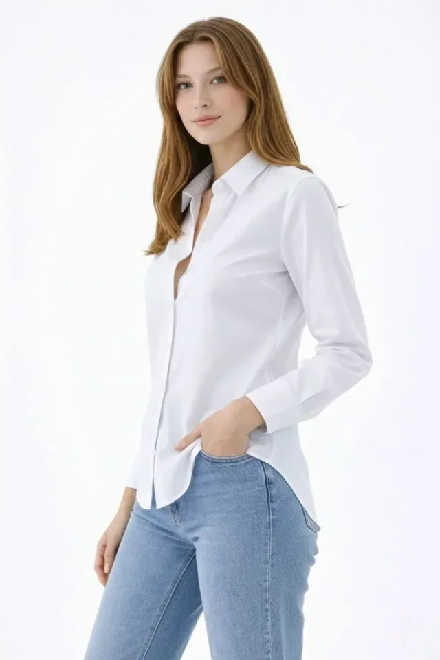 Uzun Kollu Gömlek Düğmeli Klasik Yaka Günlük Ve Ofis Şıklığına Uygun - Beyaz