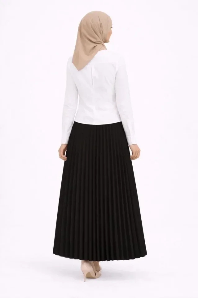 Tesettür Beyaz Gömlekli Pliseli Etek İkili Takım Gündelik Ve Ofis Şıklığı - Siyah
