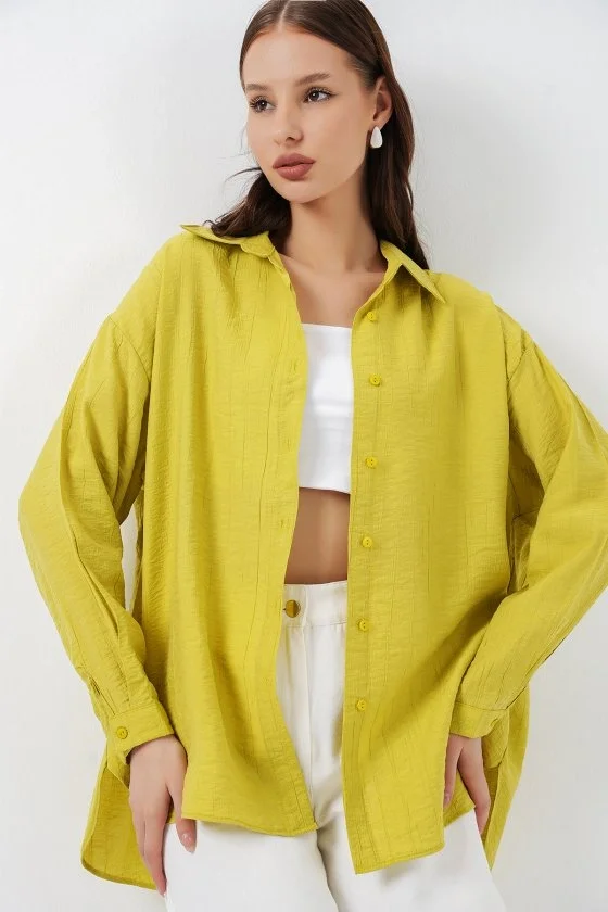 Uzun Oversize Gömlek 20334 - Hardal