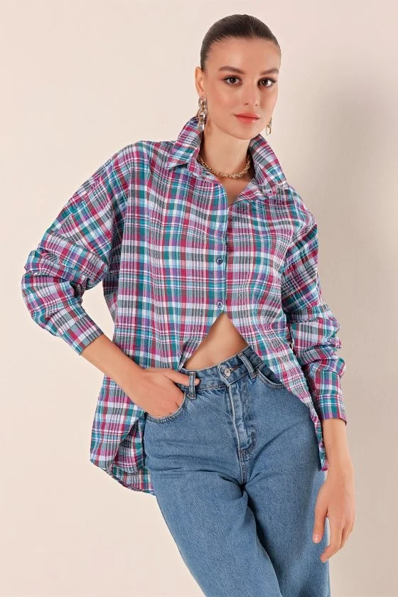 3900 Oversize Uzun Basic Gömlek - Zümrüt Yeşili