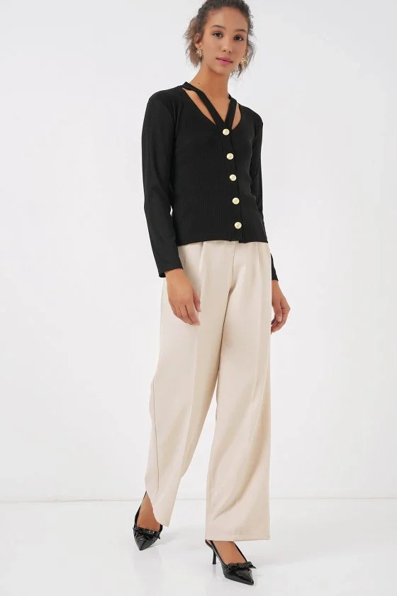 Kadın Uzun Kollu Düğme Detay Triko Hırka