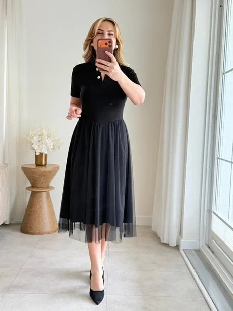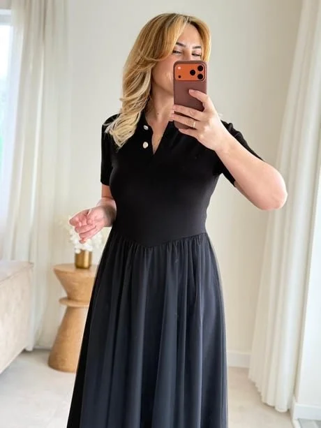 Kadın Tül Etekli Viskon Elbise
