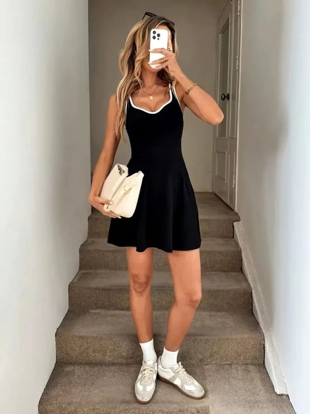 Kadın Askılı Yuvarlak Yakalı önden Pileli Kısa Aerobin Elbise
