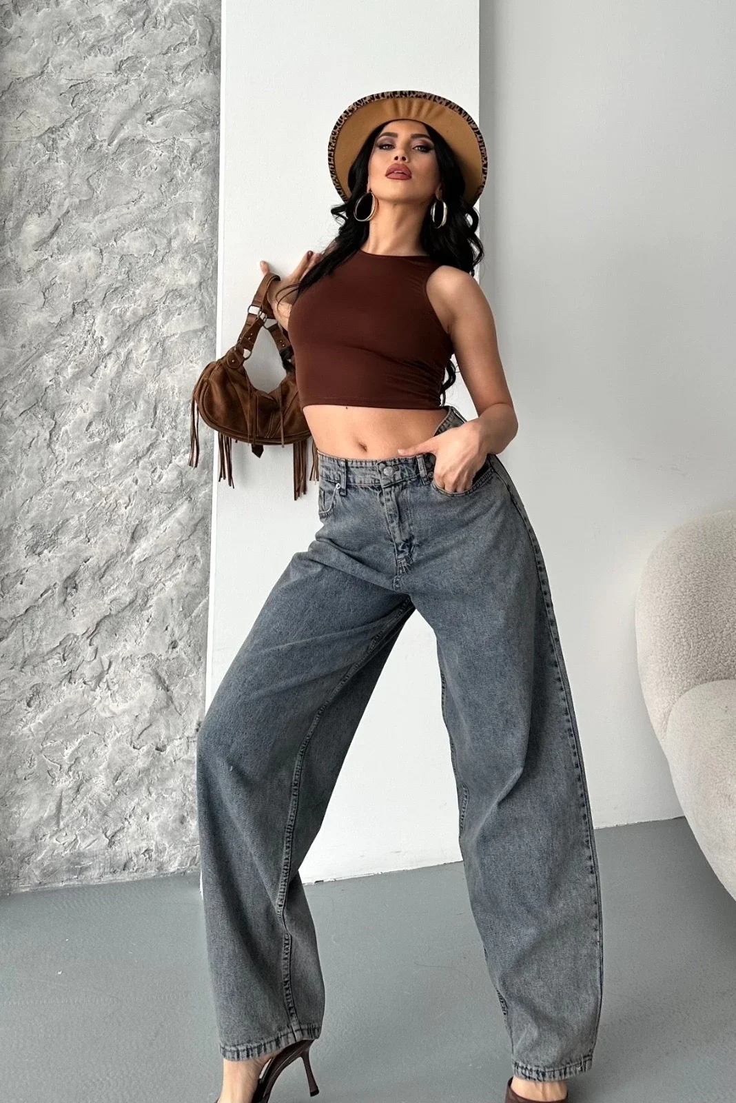 Baggy kar yıkama eskitme kahve jeans pantolon d2007 ile tarzınızı tamamlayarak şıklığı yakalayabilirsiniz.