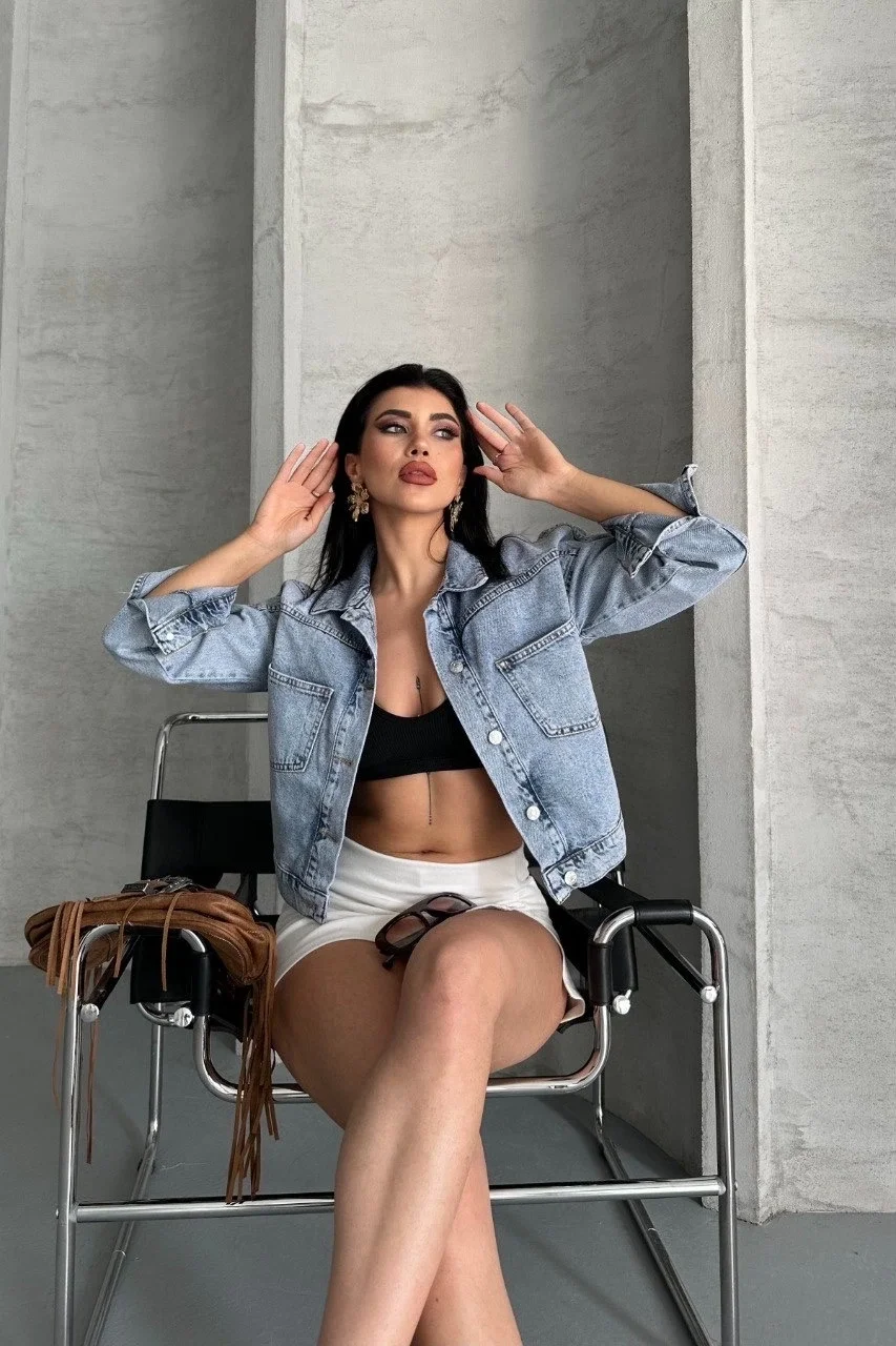 Modern tasarımıyla öne çıkan Çift Cepli Kol Katlamalı Kar Yıkama Crop Kot Ceket Buz Mavi D2000, gardırobunuzun vazgeçilmez parçalarından biri olmaya aday.