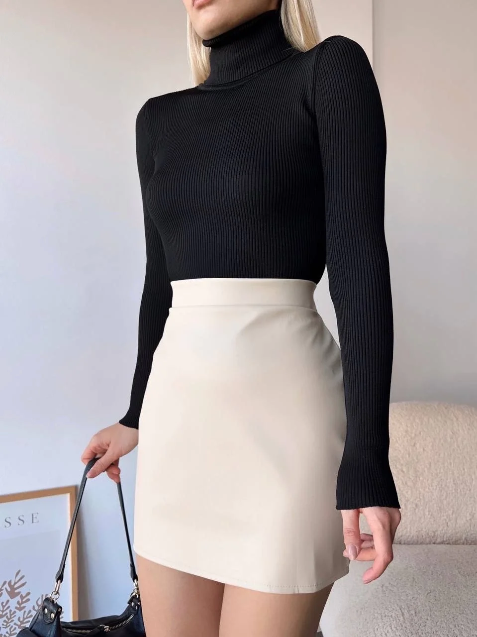 Şıklığı ve konforu bir arada arayan kadınların tercihi olan düz deri etek bej h24468, gardırobunuzun vazgeçilmez parçalarından biri olmaya aday!