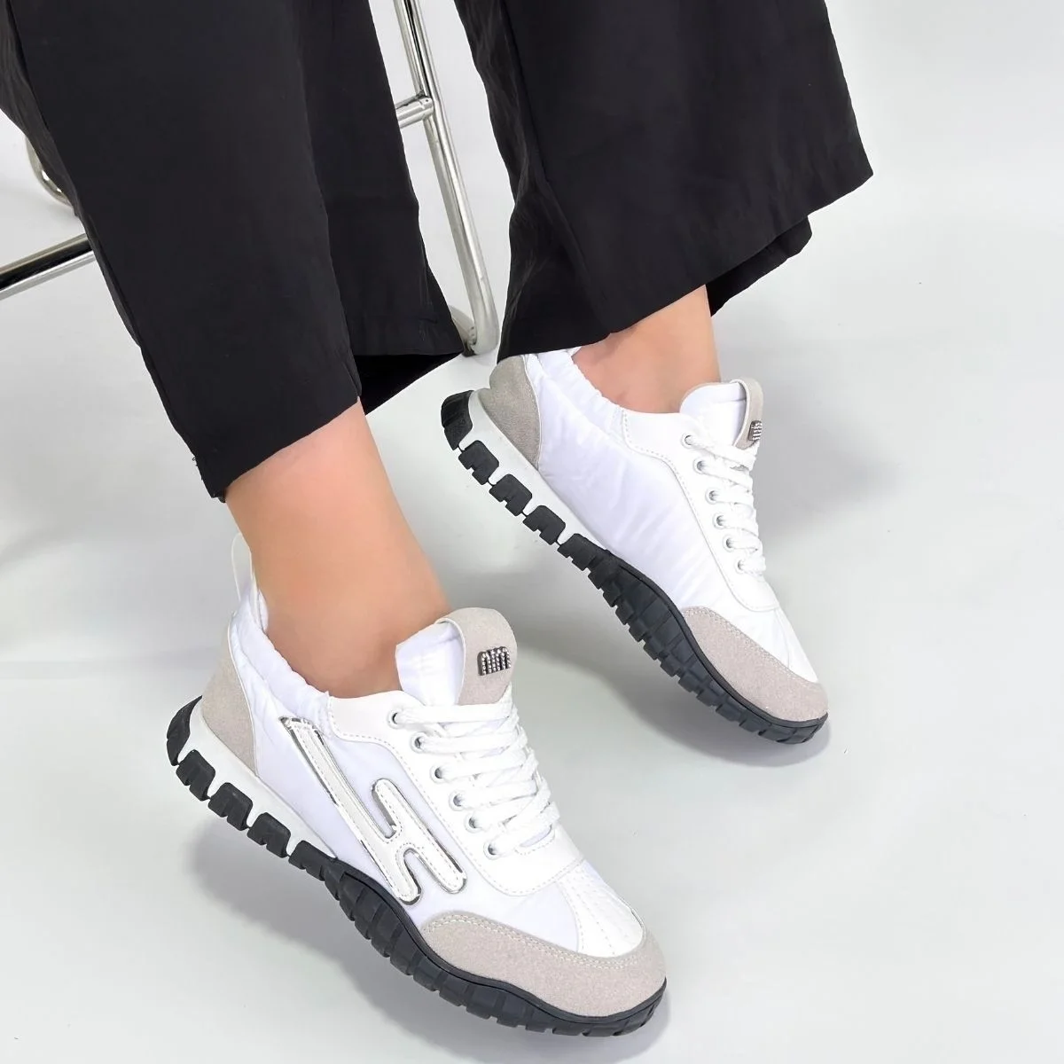 • Huer Beyaz Nubuk Bağcıklı Spor Ayakkabı