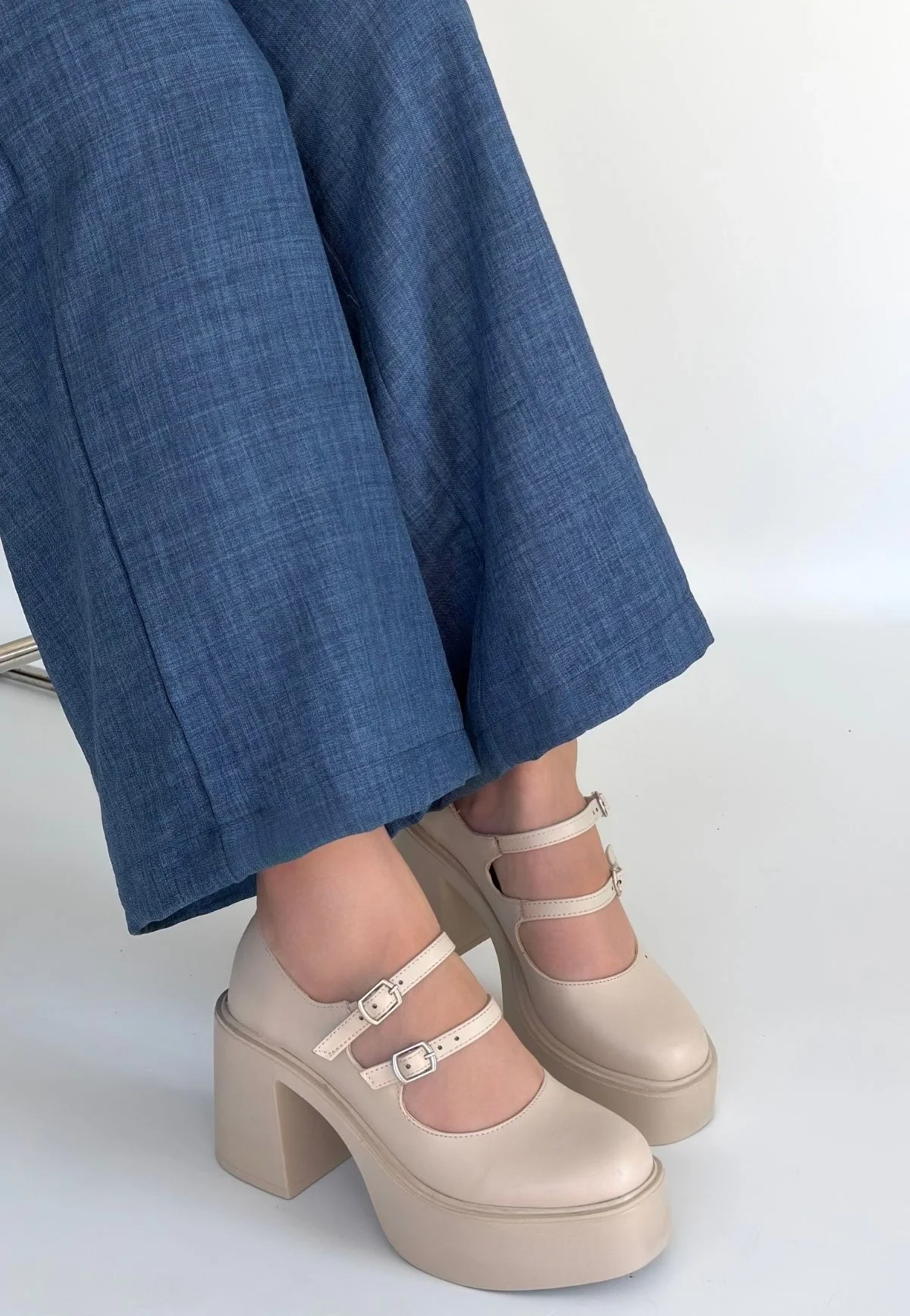 Jarlo Bej Cilt Dolgu Topuk Ayakkabı