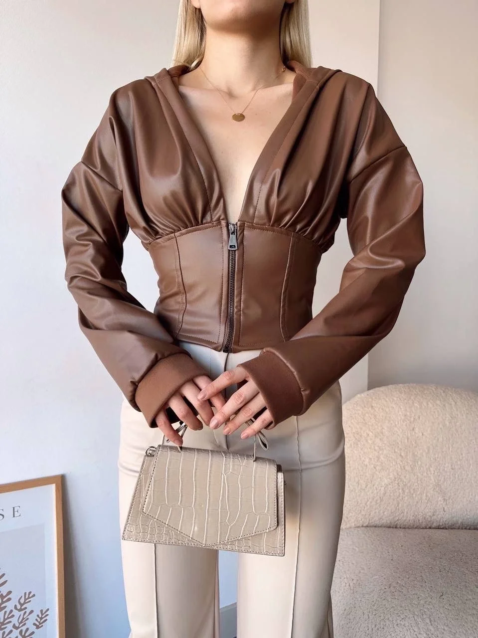 Şıklığı ve rahatlığı bir arada sunan siyah kapşonlu yarım fermuarlı ceket ile tarzınızı konuşturun.