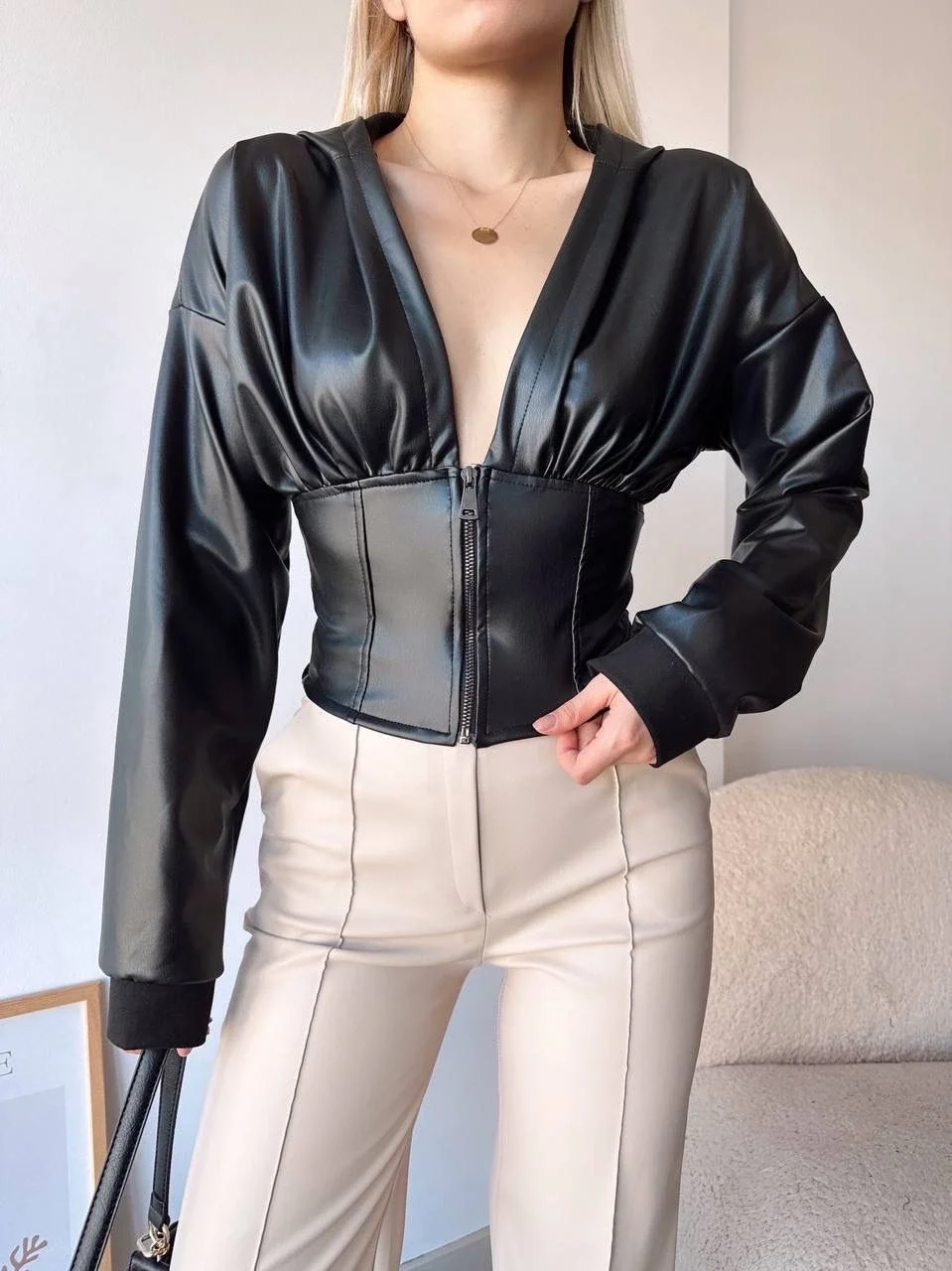 Şıklık ve rahatlık arayan kadınların tercihi olan siyah kapşonlu yarım fermuarlı ceket, her mevsim kullanım için idealdir.