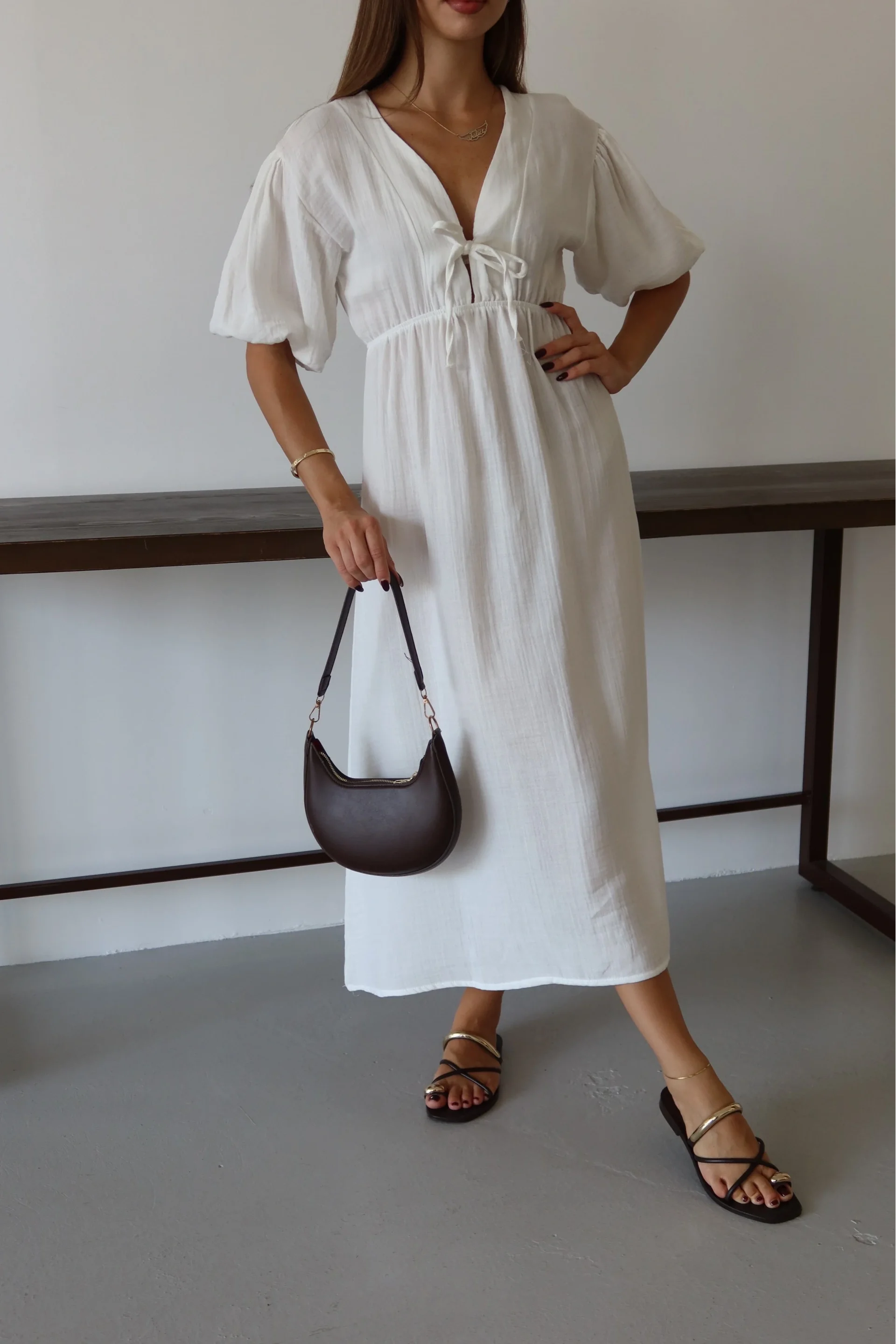 Kadın Ip Askılı Yuvarlak Yakalı Cepli Uzun Viskon Elbise