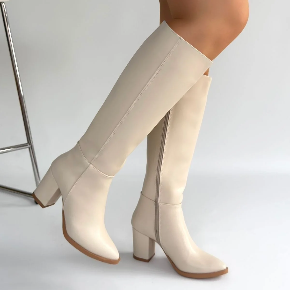 Detay: Topuklu Diz Altı Yandan Fermuarlı Çizme