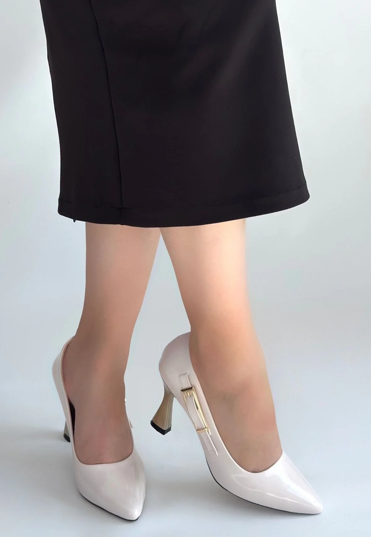 • Motya Bej Rugan Topuklu Ayakkabı