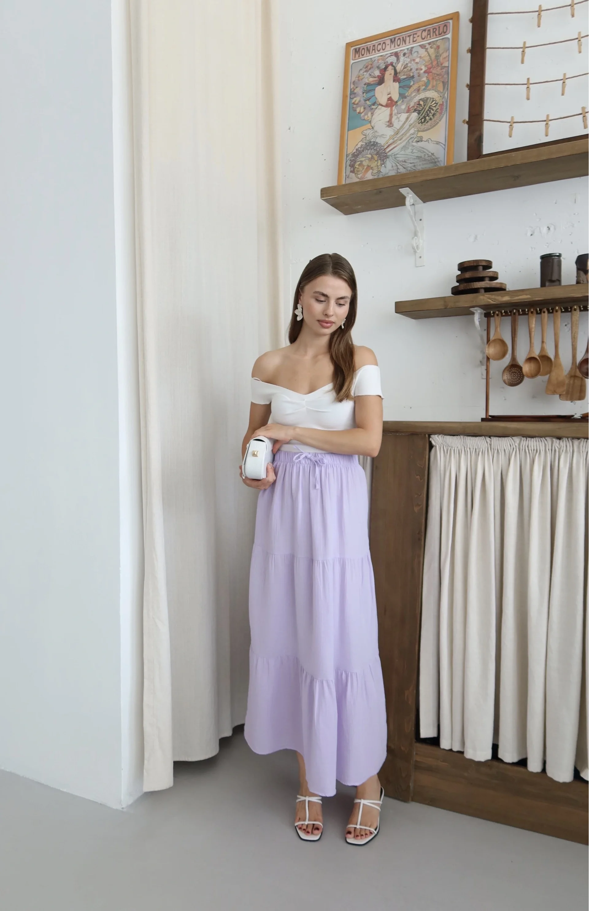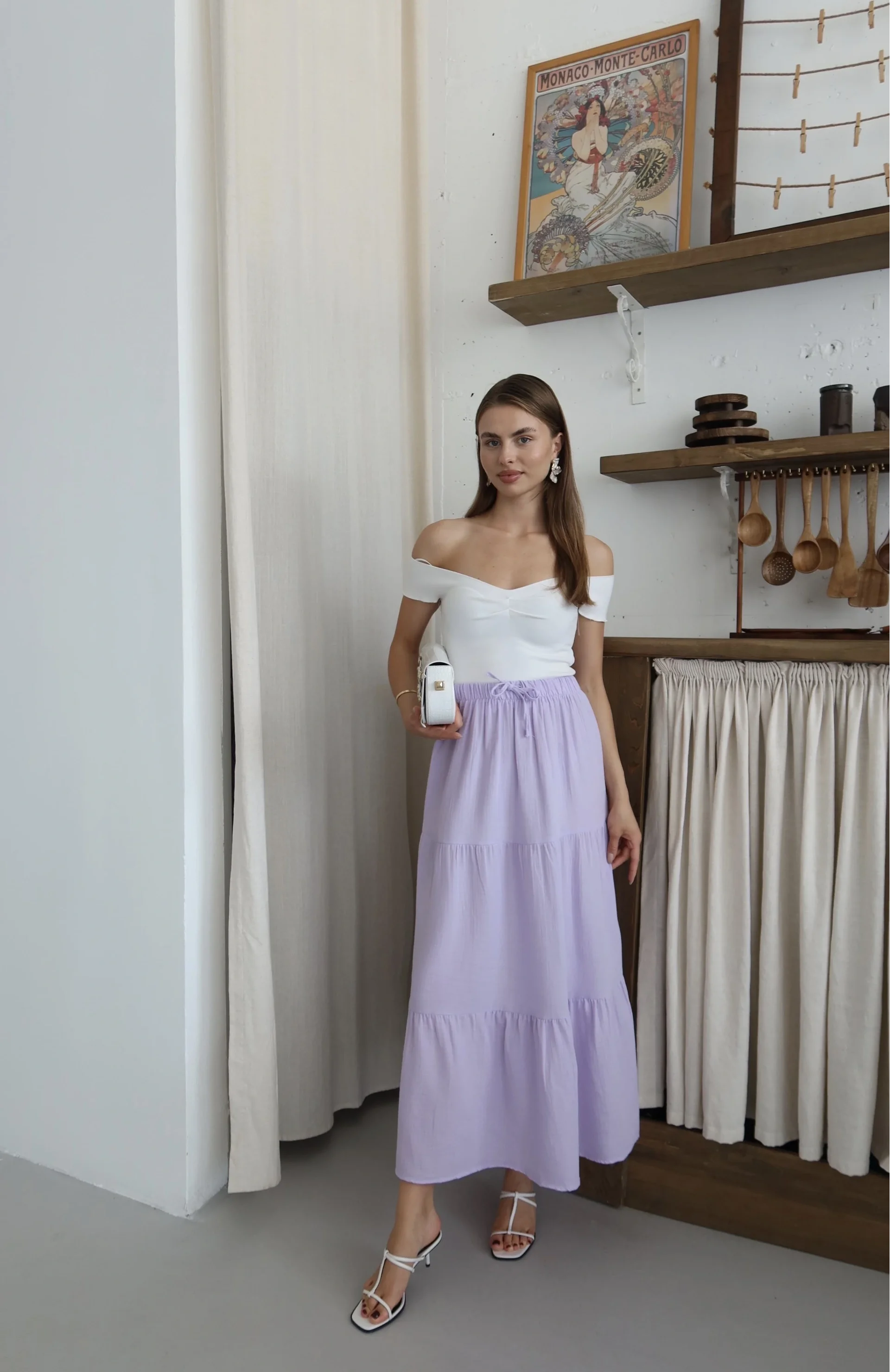 Sezonun trend parçası olan bu uzun etek, şıklığı ve rahatlığı bir arada sunuyor. Yüksek kaliteli müslin kumaştan üretilmiş olan etek, gün boyu konfor sağlar. Zarif lila rengi ile her mevsim ve her kombinle uyum sağlar.