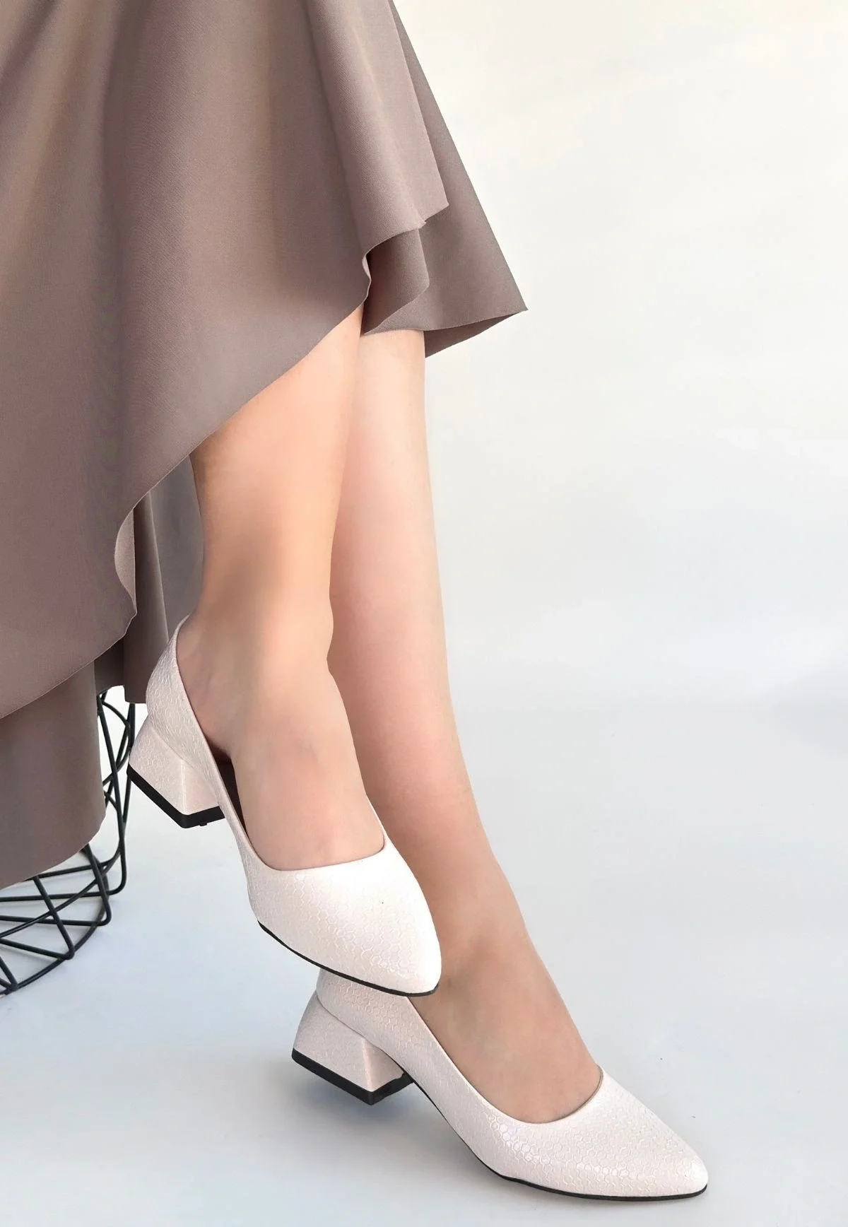 • Nitya Bej Baskılı Rugan Topuklu Ayakkabı