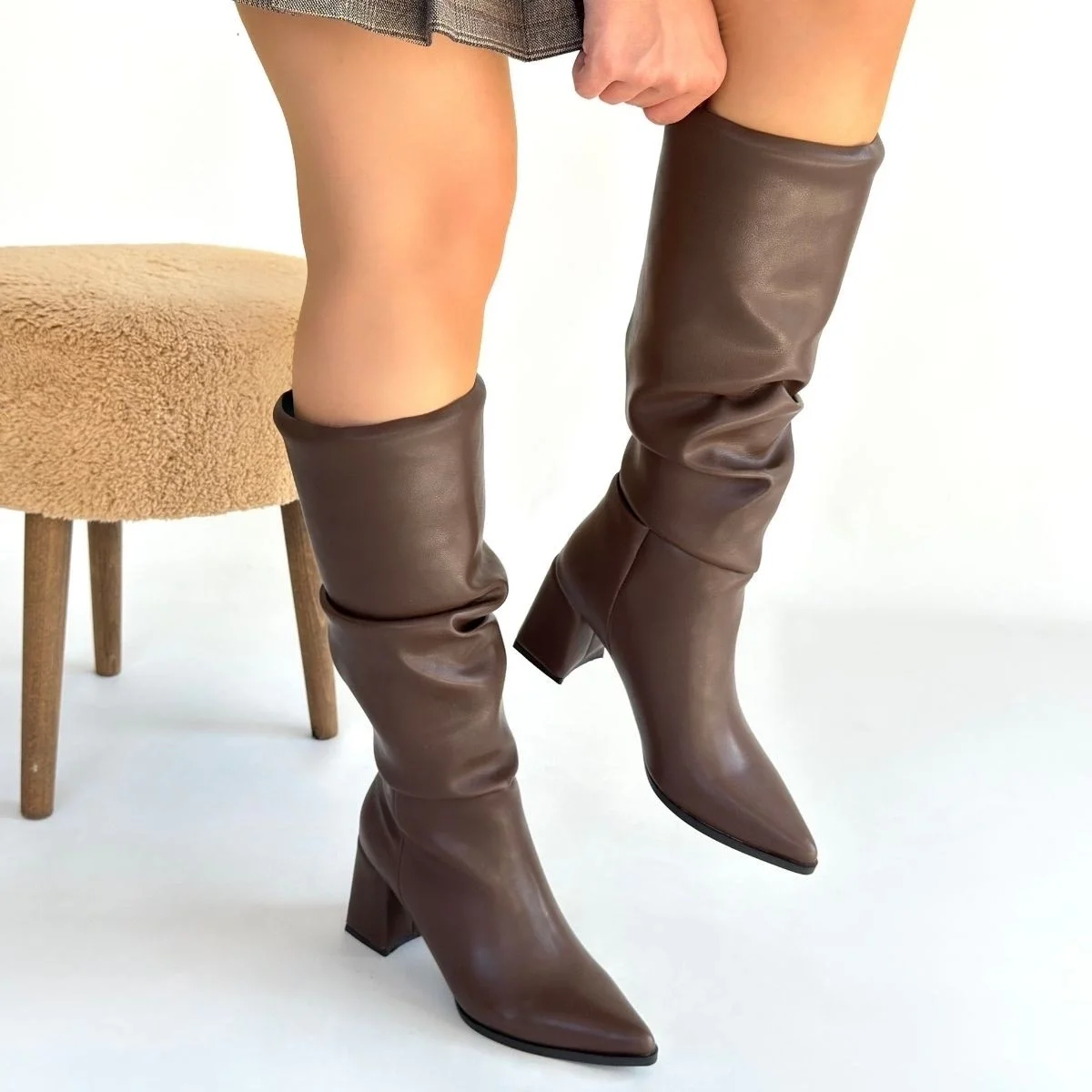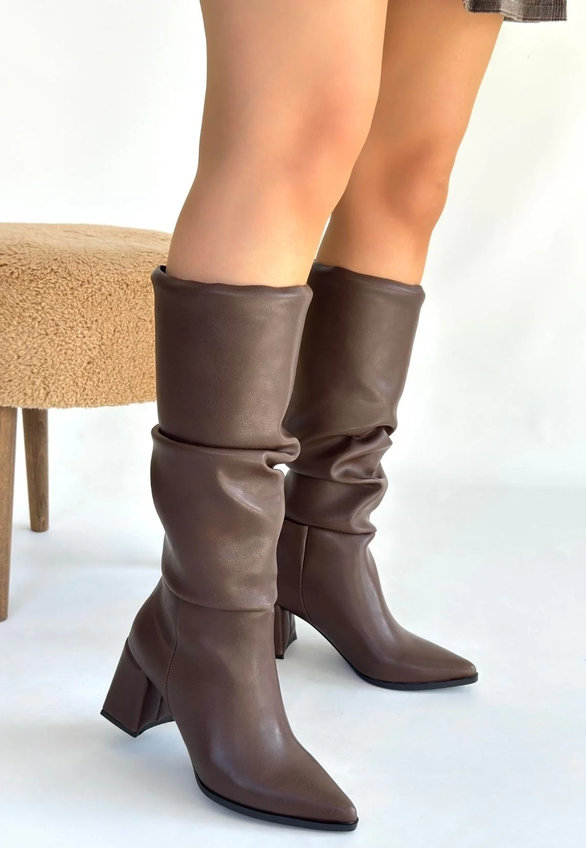 Detay: Topuklu Diz Altı Körüklü Çizme