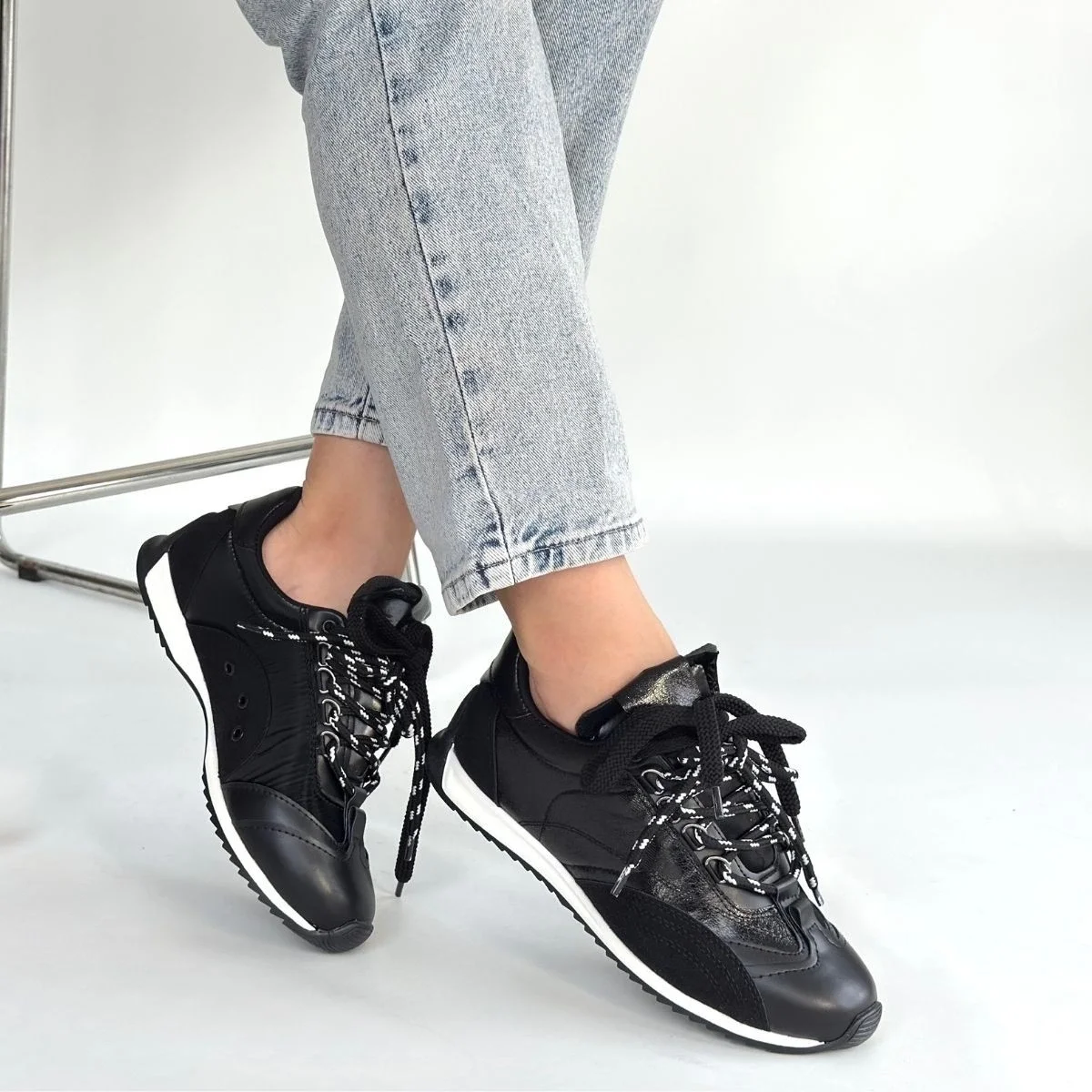 Ranu Siyah Cilt Paraşüt Detaylı Bağcıklı Spor Ayakkabı