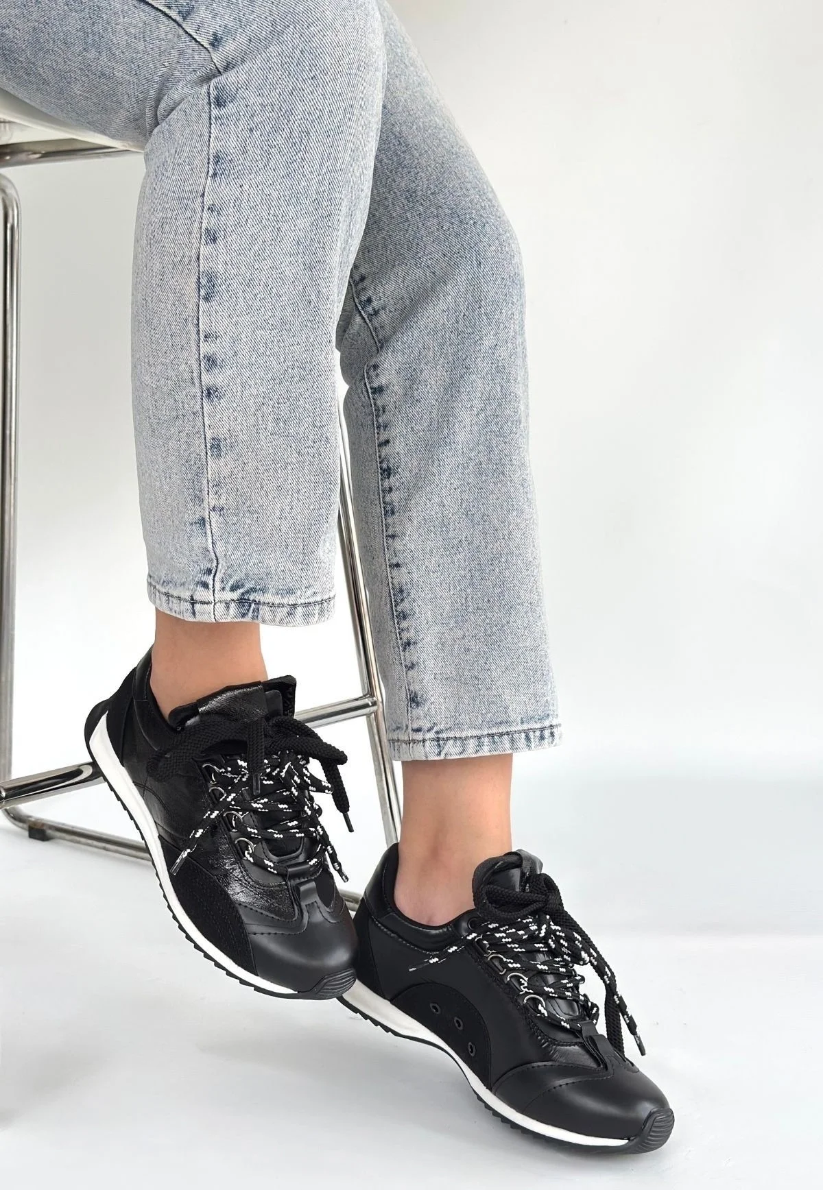 • Reat Siyah Cilt Bağcıklı Paraşüt Detaylı Spor Ayakkabı