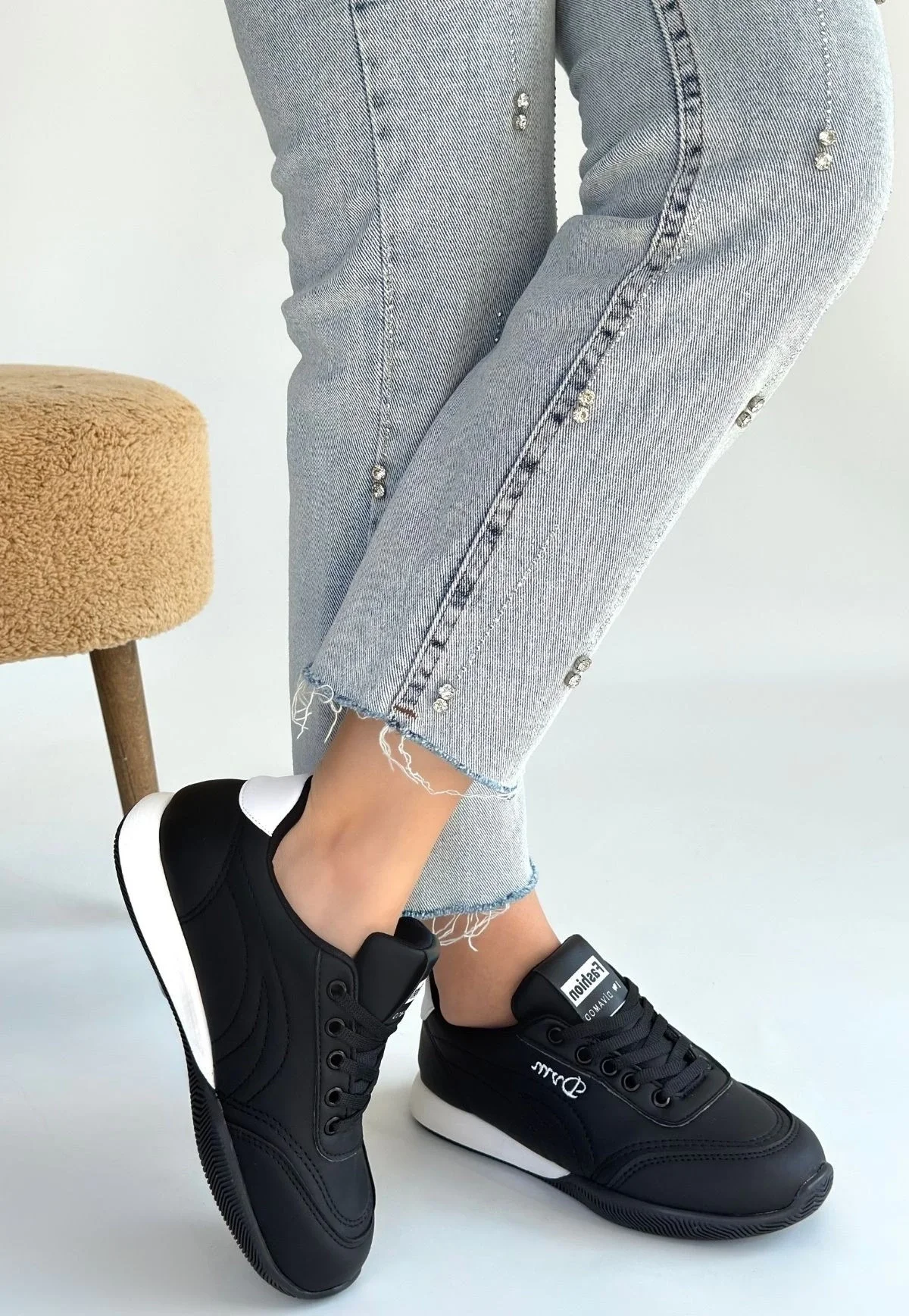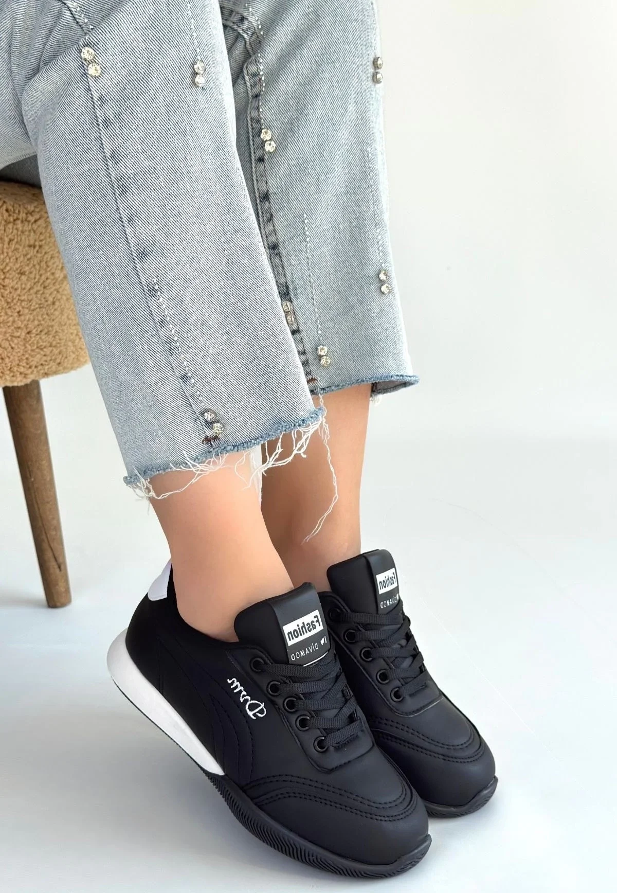 • Tawen Siyah Cilt Bağcıklı Spor Ayakkabı
